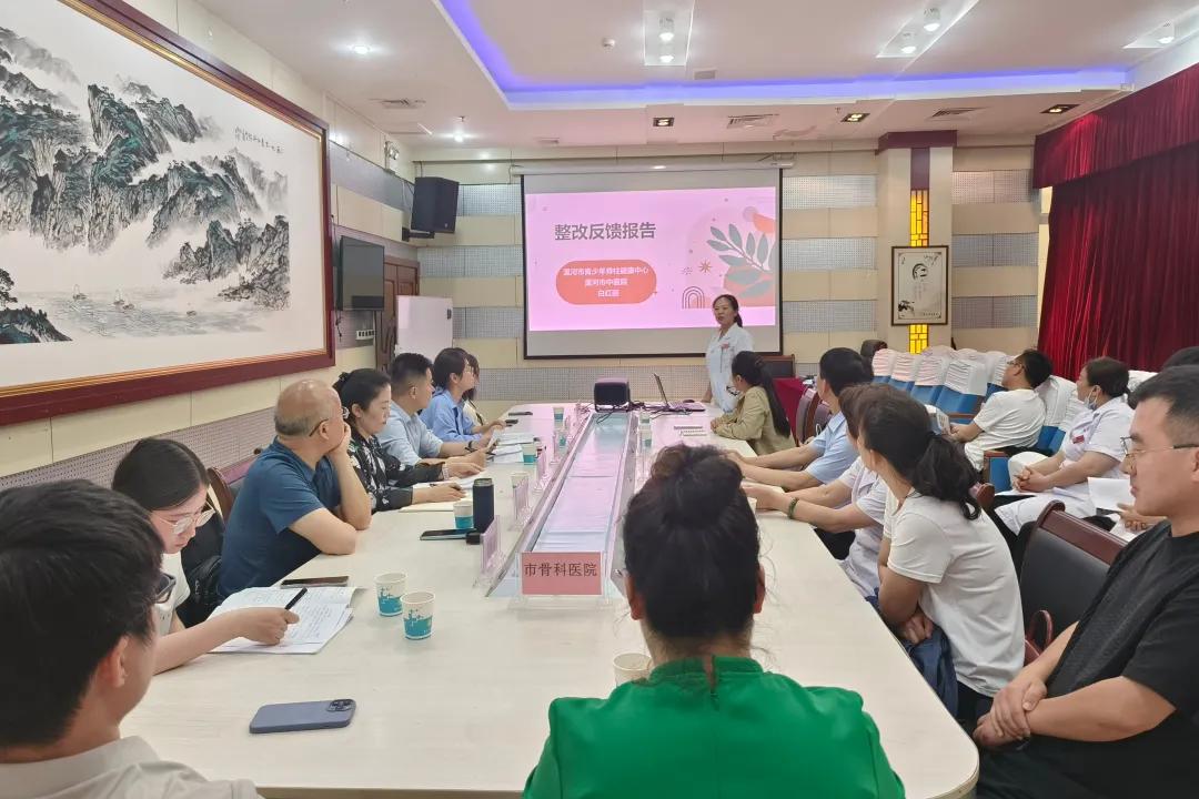 在整改匯報環節,漯河市中醫院、市中心醫院、市骨科醫院等多家醫療機構依次匯報了2024年度青少年脊柱健康工作質量評價整改成果。市中醫院兒科副主任醫師白紅麗在匯報中重點提出四項創新舉措:一是優化中心工作制度體系,確保管理更加科學高效;二是強化專業人才梯隊建設,定期開展技能培訓;三是聯合學校、社區開展立體化科普宣教,提升公眾健康意識;四是深化多機構協作,構建“預防-篩查-診療-隨訪”一體化服務網絡。這些務實舉措充分彰顯了中醫院作為承辦方的責任擔當與創新引領。