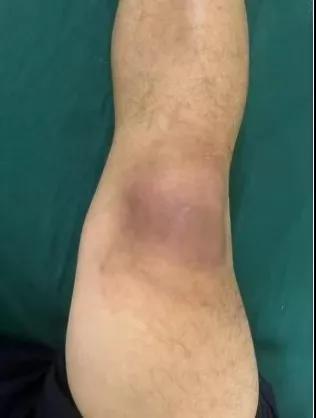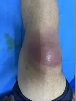 患者,以“外傷致右膝紅腫、疼痛20余天”為主訴就診,20余天前,因騎電車摔傷右膝關節,致使出現右膝腫脹、疼痛、活動受限,在當地醫院給予消腫、止痛治療效果差,繼而出現膝關節紅腫熱痛癥狀,門診給予滑膜炎片及消腫止痛藥物治療癥狀未見好轉,慕名前來我院手顯微外科住院。入院當天即給予中藥外敷(骨炎膏),穿刺膿性分泌物送細菌培養,給予廣譜抗生素治療(細菌培養未出)。