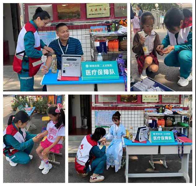 活動期間,市二院志愿服務隊保障人員統一身著紅十字志愿者馬甲,在活動現場設立醫療保障點,并配備急救箱、氧氣瓶,監護儀,擔架等專業設備,全程值守,針對參會人員可能遇到的中暑、跌倒、急性病癥等突發狀況制定應急預案,并提供血壓監測、健康咨詢等便民服務。此外,醫療團隊還與活動主辦方保持緊密溝通,動態調整保障方案,確保醫療資源精準投放,滿足活動的各種醫療需求。