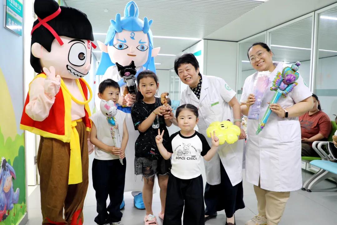 門診大廳化身兒童樂園,醫護人員化身哪吒、敖丙、花仙子等諸多可愛的卡通人物與小朋友們熱情互動,友好交流,派發精心準備的節日禮物。市二院黨委書記魏松,黨委副書記、院長胡海英攜班子成員及兒科專家、醫護團隊為小朋友們送上暖心的節日禮物與祝福,與孩子們共度“六一”。
