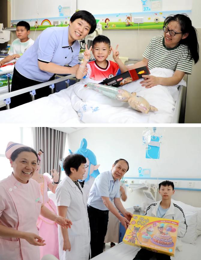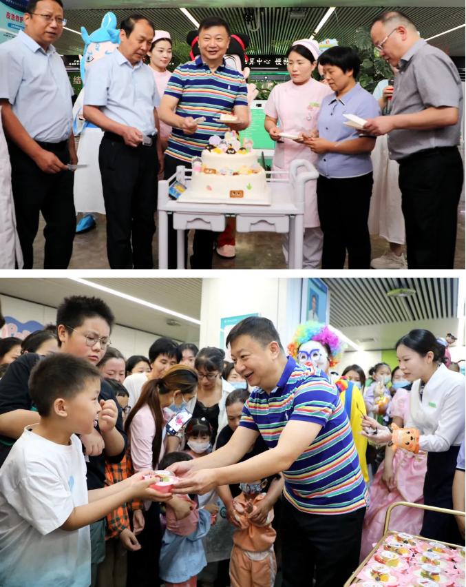 在孩子們期待的目光中,黨委書記魏松、院長胡海英攜班子成員和兒科專家們為孩子們一起切下并分享節日蛋糕,“愿寶貝們心里有愛,眼里有光,永遠做自己的小太陽!”真摯的祝福隨蛋糕甜香漫溢全場。