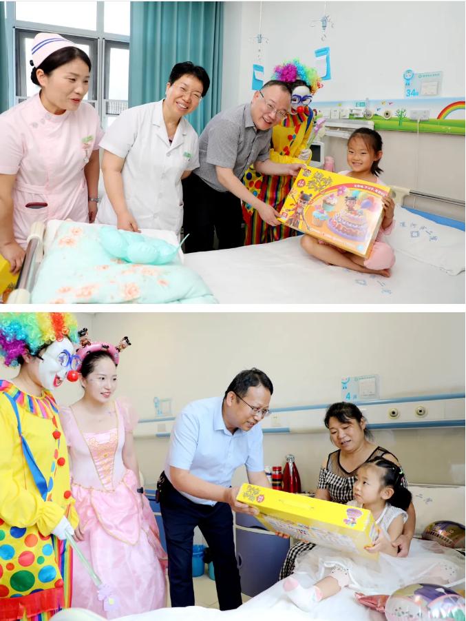 隨后,院領導一行分別到兒科門診、住院病房,看望慰問就診、住院的孩子們。走訪過程中,院領導為孩子們送上節日祝福與精美的禮物,俯身與孩子們親切交流,細心詢問他們的治療情況,并特別囑咐醫護人員要始終秉持醫者仁心,以專業的醫療技術和無微不至的關懷服務每一位患兒。歡樂的笑容在孩子們臉上綻放,溫馨的氛圍感染著在場的每一個人,患兒家屬紛紛對醫院領導的暖心慰問表示誠摯的謝意。