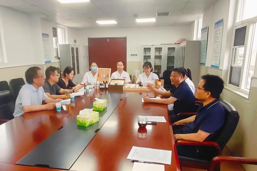 為深入挖掘中醫藥產業發展潛力,助推漯河中醫藥事業高質量發展,6月20日上午,漯河市科學技術局黨組書記、局長效國強帶領中原食品實驗室行政副主任、實驗室服務中心主任高鵬,中原食品實驗室綜合行政部部長,實驗室服務中心綜合辦公室副主任張艷一行三人來院調研。漯河市中醫院紀委書記劉家棟,藥學部主任陳朝鋒以及中藥衍生品研發團隊和相關醫療專家等人員參加會議。