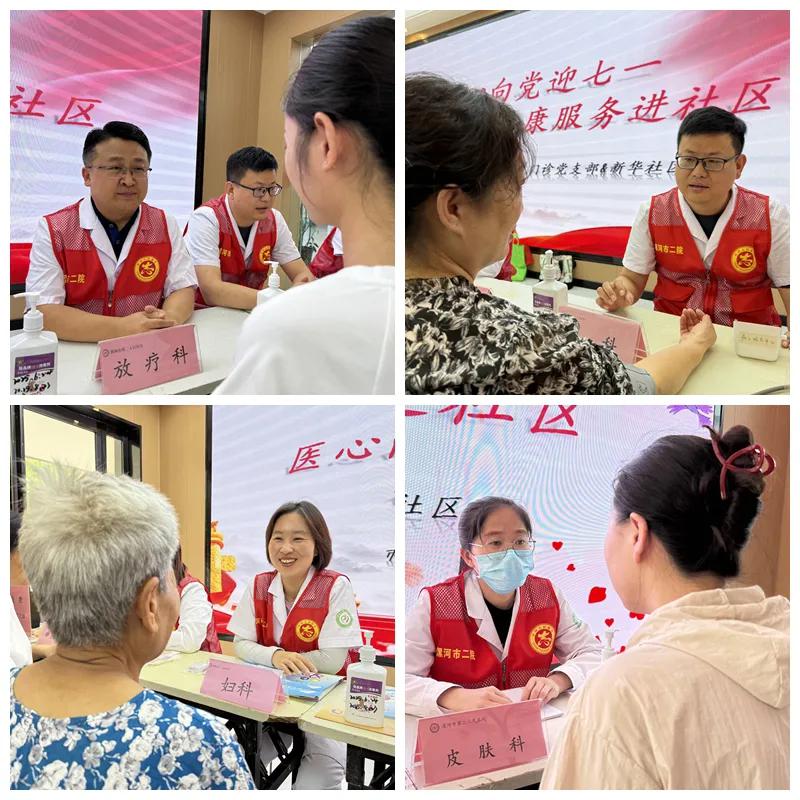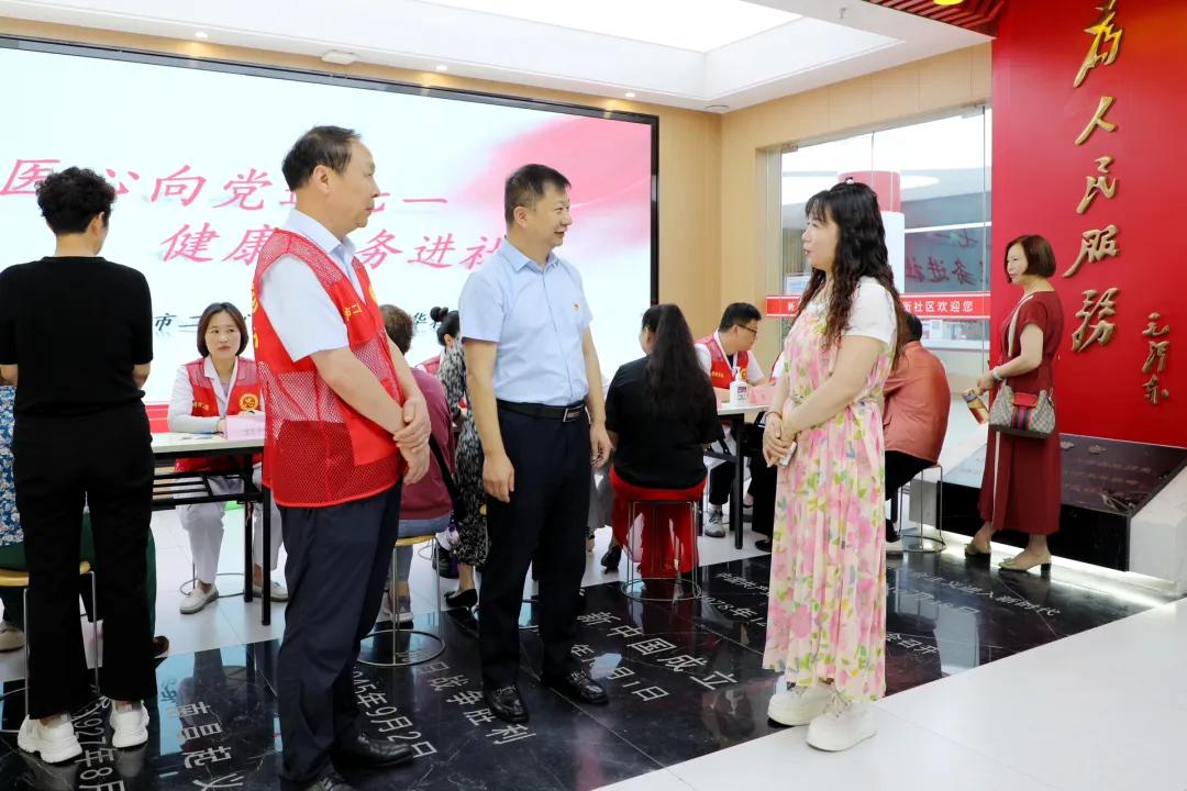 6月25日上午,市二院黨委書記魏松、紀委書記孟德陽帶領門診黨支部黨員志愿者到新華街社區開展“醫心向迎七一 健康服務進社區”義診宣傳活動,以實際行動向黨的生日獻禮。