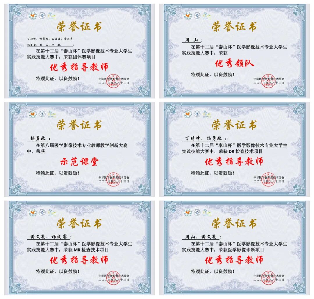 其中學(xué)生皇巧梅、李博文、李印分別榮獲DR、MRI檢查技術(shù)項目和醫(yī)學(xué)影像診斷項目第一名,劉慧杰、仝鑫琦、胡巧同學(xué)分別榮獲超聲、CT檢查技術(shù)和醫(yī)學(xué)圖像處理項目第二名,楊勇政老師在教師教學(xué)比賽中榮獲優(yōu)秀創(chuàng)新大賽示范課堂,最終參賽團隊以優(yōu)異的綜合成績摘得團體項目競賽第一名的桂冠,優(yōu)秀的成績贏得了大賽評委和參賽同道的廣泛贊譽。這也是繼2018年首次參加該賽事以來,漯河醫(yī)專二附院醫(yī)學(xué)影像教學(xué)團隊取得的又一優(yōu)異成績。
