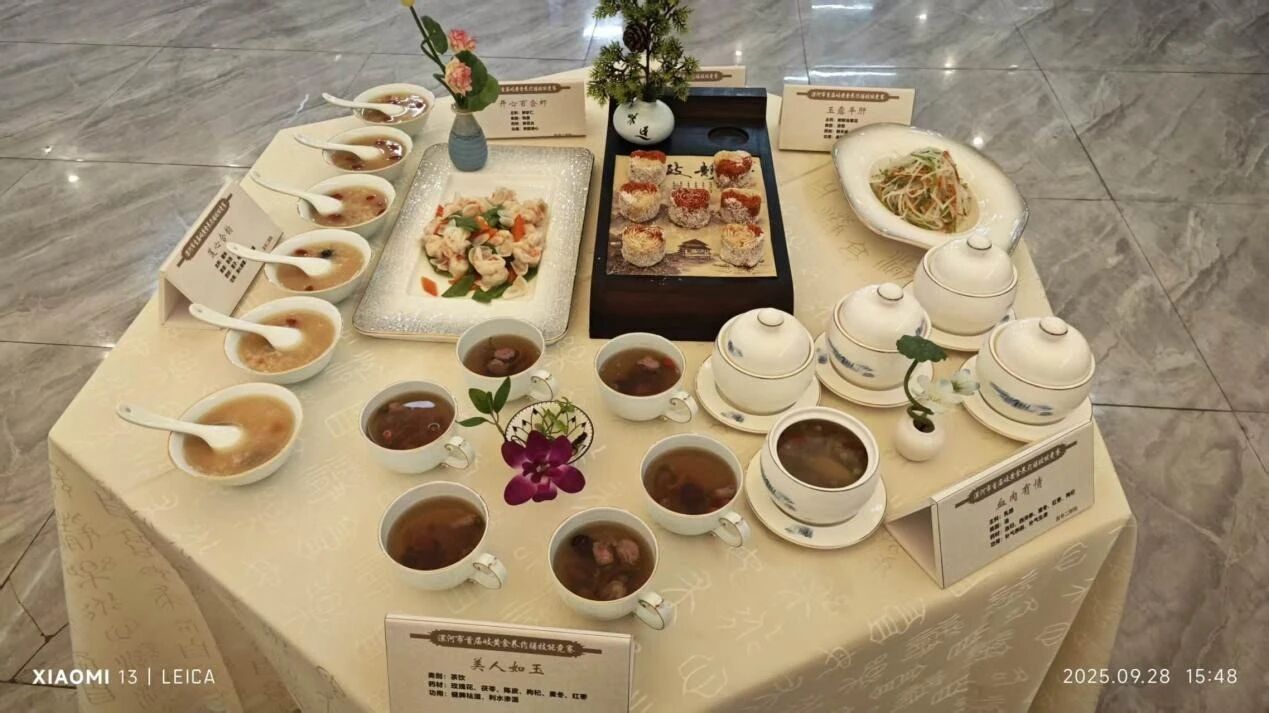 經(jīng)過(guò)激烈角逐,團(tuán)隊(duì)?wèi){借“開心百合蝦”“玉芝云糕”“玉露平肝”“血肉有情”“美人如玉”等一系列兼具養(yǎng)生功效與美味口感的藥膳作品(如圖中展示的精美藥膳,涵蓋熱菜、涼菜、面點(diǎn)、湯品、茶飲等多種類型),從眾多參賽隊(duì)伍中脫穎而出,成功斬獲團(tuán)體二等獎(jiǎng),與漯河技師學(xué)院共享這一榮譽(yù),充分彰顯了醫(yī)院在食養(yǎng)藥膳領(lǐng)域的綜合實(shí)力。