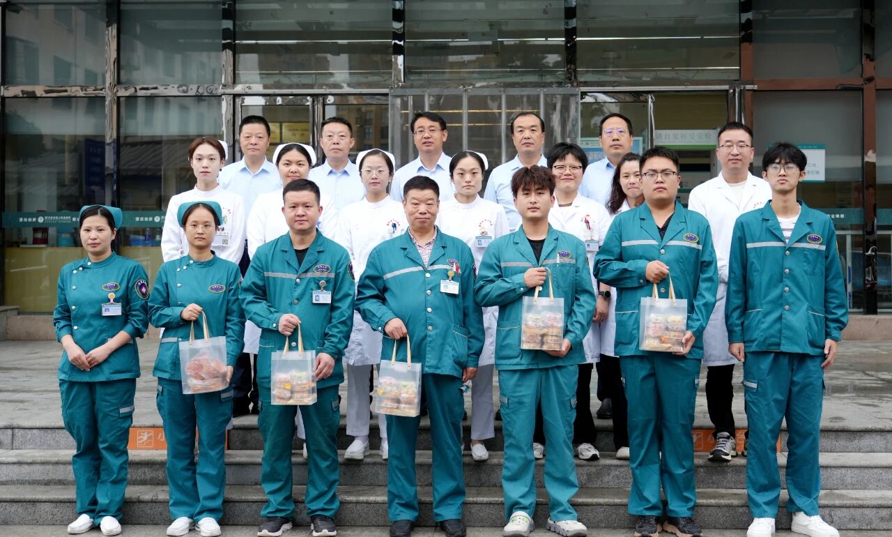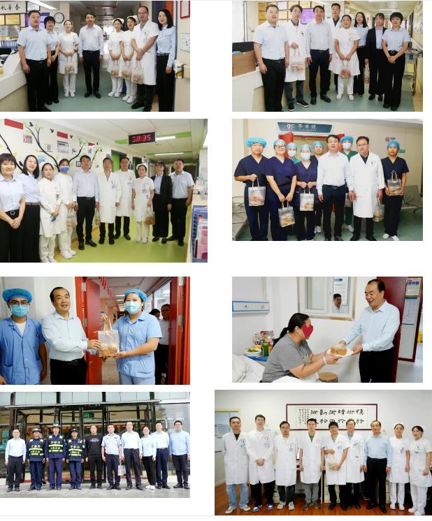 所到之處,暖意濃濃。每到一處,院領導都與大家親切交談,將承載著關心和祝福的慰問品送到大家手中,詳細詢問假期排班情況、保障措施落實情況,對大家堅守崗位、無私奉獻的精神給予高度贊揚,對職工家屬們的理解和支持表示感謝。同時,叮囑大家在全力保障醫療工作的同時,要注意休息。在病房里,院領導將精心準備的月餅送到住院患者及家屬手中,詳細詢問他們的恢復情況,并為他們送上節日的祝福。