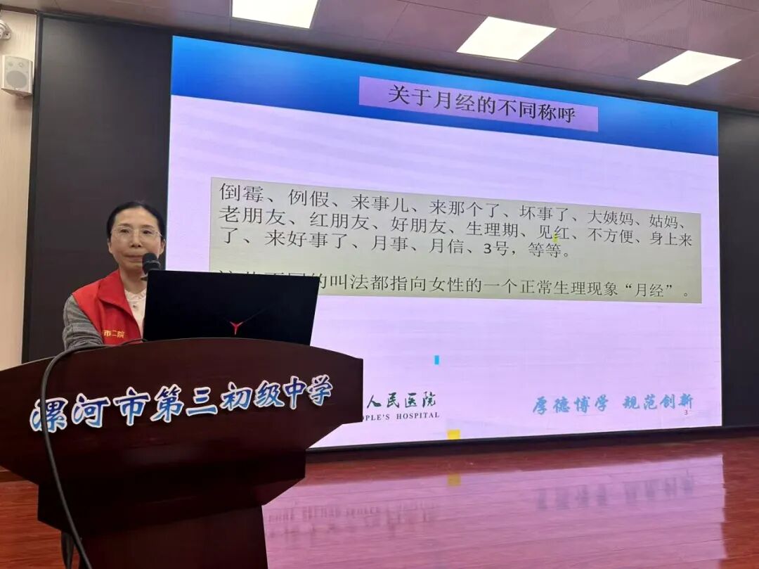 活動現場,婦產科主任井紅鴿從月經的形成原理、周期變化,到日常護理的注意事項,用通俗易懂的語言,結合形象的圖示,讓女生們對自身的生理變化有了更深入地了解。特別強調了月經是女性正常的生理現象,是成長過程中不可或缺的一部分,鼓勵女生們摒棄傳統觀念中的羞恥感,以積極的心態接納和面對。隨后,針對女生們在青春期可能遇到的生理和心理問題,醫護人員和志愿者們也給予了耐心地解答和專業的建議,得到了學校師生的一致好評。