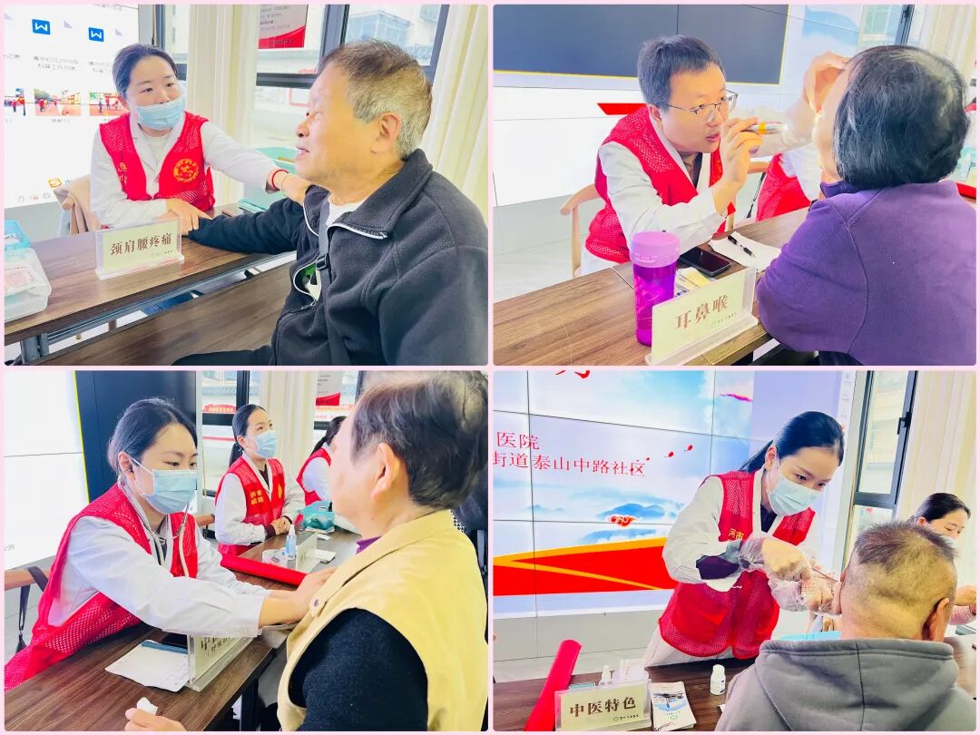 活動現場,根據群眾需求,外一科、呼吸消化科、耳鼻喉科、康復院區等多個科室醫護人員,為社區居民提供專業診療服務。盡管天氣陰冷,前來咨詢問診的居民仍然絡繹不絕,甲狀腺彩超檢查前面更是排起了長隊。醫護人員認真的為每一位居民量血壓、測血糖、耳鼻喉常規等檢查,并一對一提供健康指導,進行健康信息登記。針對居民常見頸椎病、腰椎間盤突出癥、中風后遺癥等疾病,康復院區副主任盧鑫現場為居民進行中醫特色適宜技術及科普簡單易學的穴位保健方法,讓居民朋友生活中能夠運用中醫知識預防疾病。