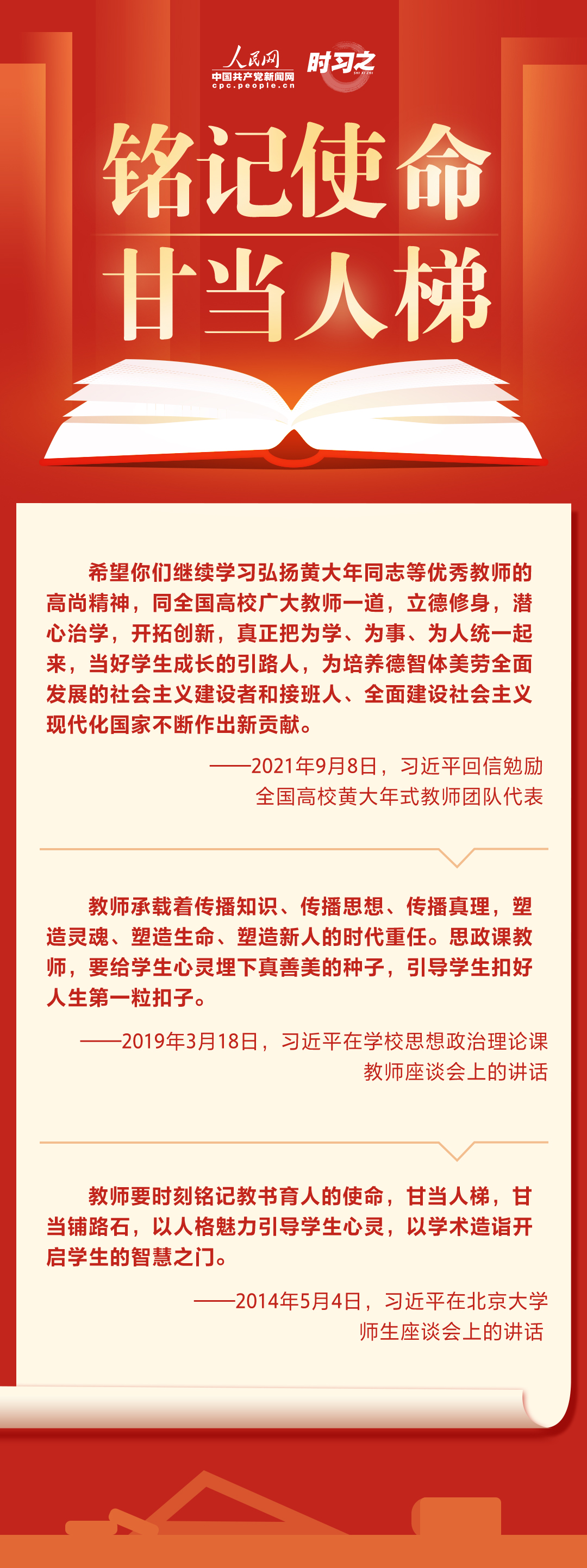 百年大計,教育為本。教育大計,教師為本。教師是教育事業的第一資源,是國家繁榮、民族振興、人民幸福的重要基石。黨的十八大以來,習近平總書記始終心系教師隊伍建設,他以多種方式表達對教師隊伍的關懷與勉勵。