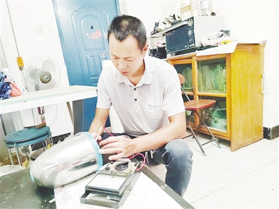 7月24日上午,記者在香堤左岸小區(qū)見到程凱亞時(shí),他正在家修一個(gè)電水壺(如圖)。“這是參加社區(qū)志愿服務(wù)活動(dòng)時(shí),一位阿姨讓我?guī)兔π薜摹.?dāng)時(shí)沒有修好,我就拿回來了,等修好了再給她送過去。”程凱亞告訴記者。