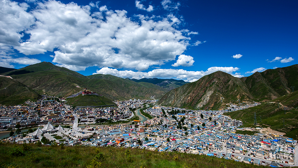 △從當(dāng)代山觀景臺(tái)俯瞰青海玉樹結(jié)古鎮(zhèn)
