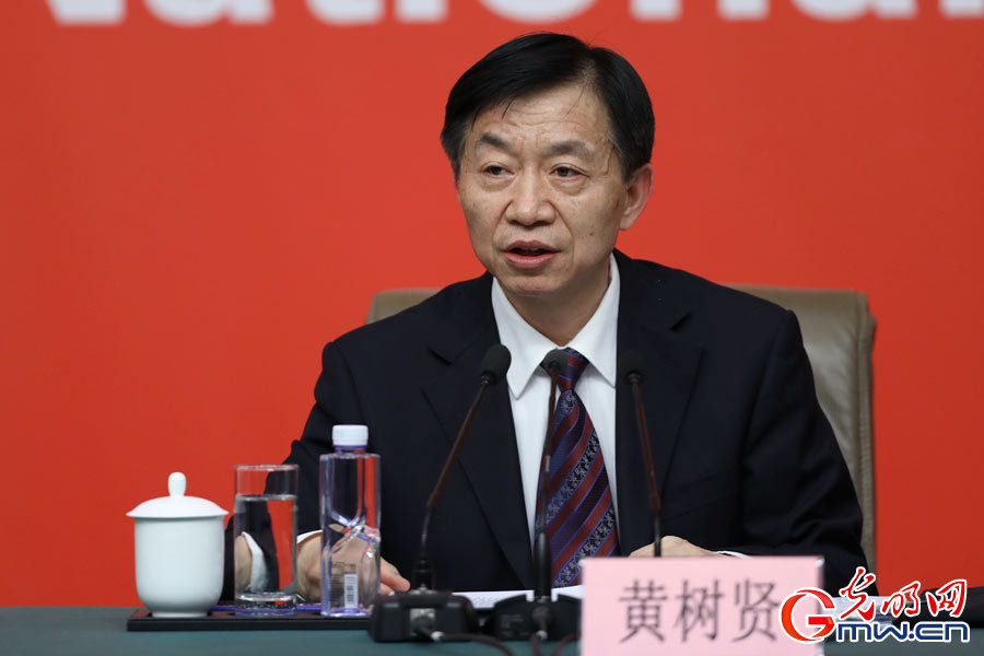 民政部黨組書記、部長黃樹賢回答記者提問。 (光明網記者 孫佳涵/攝)