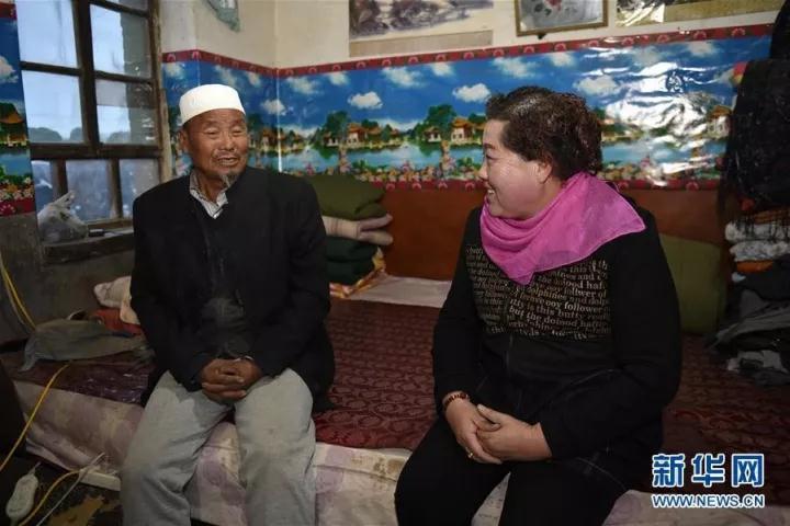 2016年10月27日,革命老區寧夏同心縣賀家塬村第一書記丁海燕(右)在貧困戶家中了解近況。 新華社記者 王鵬 攝