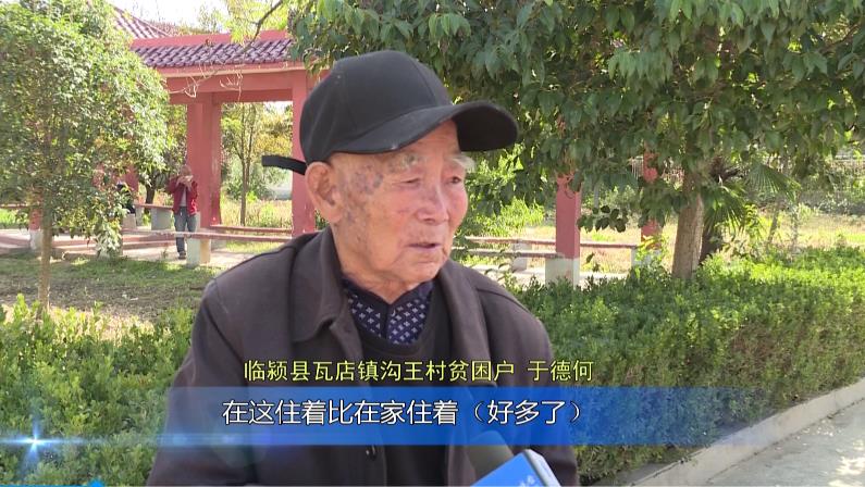在臨潁縣瓦店鎮扶貧兜底保障托養中心,?82歲的孤寡老人于德何,正和十幾名集中供養的貧困人員在活動室里下象棋、看電視。自從半年前搬到這里,于德何的晚年生活有了新的開始。