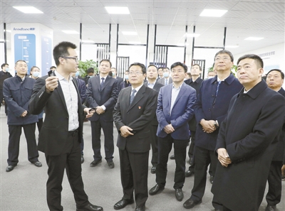 11月30日上午,市委書記蒿慧杰、市長劉尚進與來賓一起參觀中原鯤鵬創新中心漯河分中心等平臺。