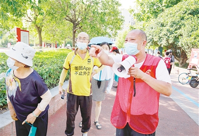 “大家排好隊,十人一組,不要著急。”8月7日,在開來怡景小區旁的核酸檢測采樣點,開來怡景小區業委會主任張曉伍幫忙維持現場秩序。從早上9點忙到晚上10點,他的嗓子啞得說不出來話。