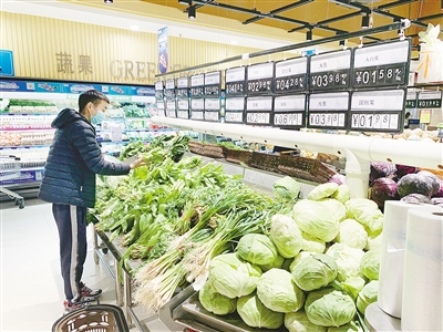 在遼河路一家商超,市民選購蔬菜。