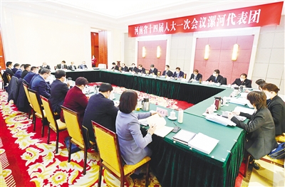 1月14日下午,出席省十四屆人大一次會議的漯河代表團召開第二次全體會議,審議省政府工作報告,審查計劃報告、預算報告及相關草案。記者 胡鴻麗 攝