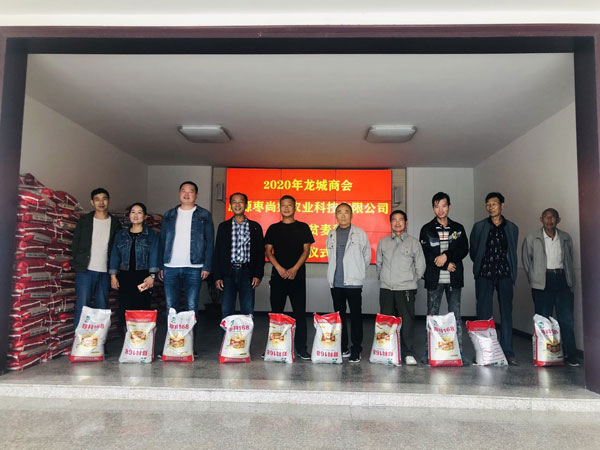 2020年9月23日,龍城鎮政府中廳進行了一場特別的小麥種子發放儀式-龍城鎮思源棗尚好農業科技有限公司金融扶貧麥種發放儀式。活動中企業不但免費給貧困戶發放優質小麥種子,還對小麥高產種植技術進行培訓。拿到麥種的貧困戶,臉上掛滿了笑容。