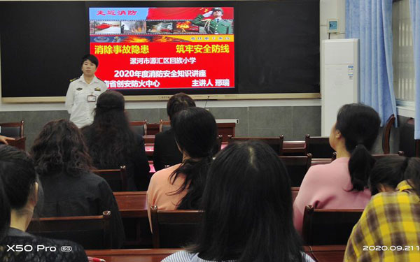 為切實加強消防安全管理,普及消防安全知識,進一步提升教職工的消防安全意識與防護能力,9月21日,源匯區回族小學邀請河南省創安防火中心邢瑞教官開展了以“消除安全隱患  筑牢安全防線”為主題的消防安全知識講座,該校全體教師和生活老師等共計50余人參加了此次知識講座。