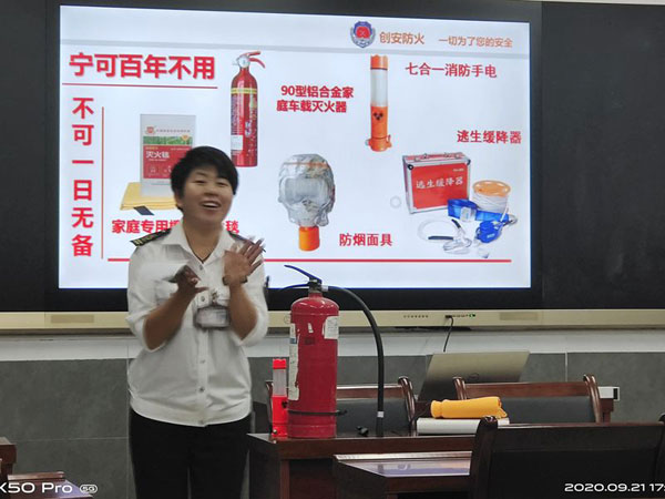 講座中,邢瑞教官分別就如何樹立消防責任意識、清除消防安全隱患、初期火災撲救、滅火器等消防器材的使用、火情緊急情況處置、火災應急疏散常識等方面進行了全面的培訓,同時,邢教官通過引用大量實際生活中的真實火災案例和具體的數字講述了由于人們缺乏消防安全知識、缺乏基本的滅火技能而引發的火災事故,通過理論講解和典型案例剖析相結合的方式,以視頻和圖片的方式進行詳細的講解分析。最后,邢瑞教官又圍繞火災誘發的主要因素以及發生火災后的不同救助方法,并且從火災的防范、逃生、自救等方面向老師介紹怎樣預防火災,如何面對火災的經驗和方法,提醒教職工在日常生活中要時時防范、處處小心。
