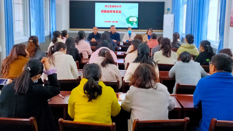 接到通知,學校就利用學校大屏幕進行宣傳,11月10日,副校長劉國勤組織全體教師,開展了主題為“源匯區回族小學預防近視專題會”,給老師講解了此次活動的目的,營造了濃厚的預防近視校園氛圍。