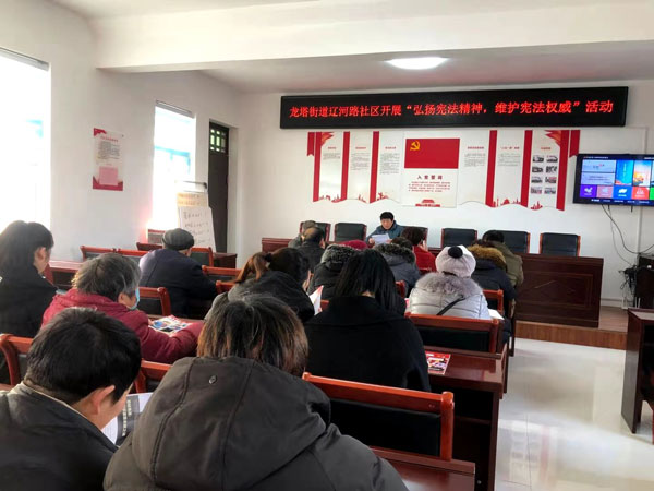 12月10日,在第三個“憲法宣傳周”活動期間,郾城區委組織部、區司法局利用每月10日的主題黨日,組織全區146個村、38個社區的法律顧問和派駐第一書記對轄區基層黨員開展以《憲法》、《民法典》、《漯河市文明行為促進條例》等法律知識的專題講座,全區共計16000多名基層黨員接受了憲法教育。