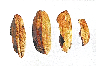 櫟果。殼斗科櫟屬植物的種子,俗稱橡子富含淀粉,其含量僅次于五谷而遠(yuǎn)高于豆類,其成熟季節(jié)相對集中,從一棵樹上就可以收獲較多,自古以來作為民間食物被廣泛食用。現(xiàn)在,舞陽縣附近的二郎山和嵖岈山依然有很多橡樹,周邊不少小商戶專營橡子涼粉,味道鮮美。賈湖發(fā)掘時出土100多粒炭化櫟的果核,均為先民從遺址周圍采摘作食物用,大多保存完整。