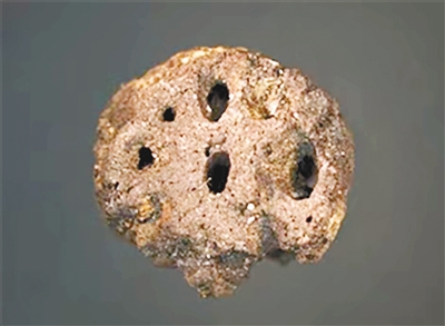 蓮。賈湖遺址浮選出土的蓮藕遺存有76件(塊),其中保存好的還可看到完整的橫切面,上面均勻分布著8到10個氣孔,與現(xiàn)代栽培藕在形態(tài)特征上完全一致,但相對較細(xì),可能是野生蓮藕。