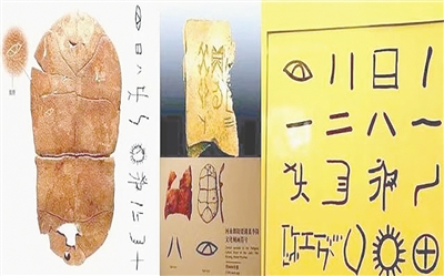 賈湖遺址中出土的契刻符號從形狀看具有多筆組成的結構,應承載契刻者的一定意圖。例如,近似甲骨文的“目”字、“曰”字等,經碳14鑒定,其年代距今7762年(±128年)。