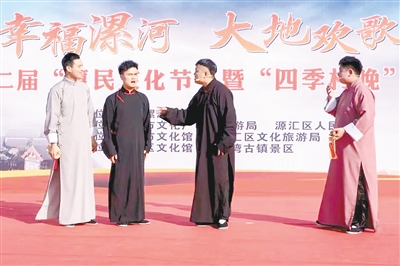 “走一走,看一看,雙匯食品品種全。火腿腸遠(yuǎn)銷海內(nèi)外,中式熟食味道鮮。還有那自熱米飯、八大碗,中央廚房營養(yǎng)餐。”“漯河美食數(shù)不完,北舞渡胡辣湯湯鮮味美,拐張麻糖焦香酥脆,繁城牛肉代代相傳……”日前,相聲節(jié)目《舌尖上的漯河》在漯灣古鎮(zhèn)景區(qū)上演。十多分鐘的時(shí)間里,四位演員口若懸河、妙語連珠,以說唱形式帶領(lǐng)大家領(lǐng)略漯河眾多美食,現(xiàn)場氣氛熱烈。