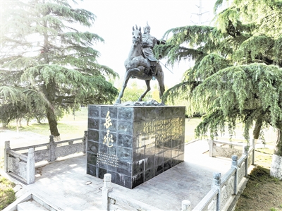 市區河堤公園里的岳飛塑像。記者 張麗霞 攝