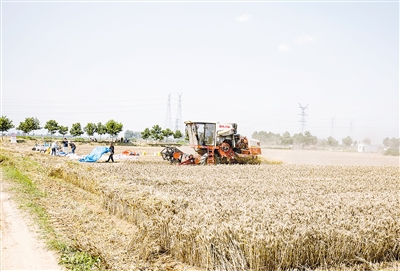 記者看到,不遠處還有多臺大型收割機在一眼望不到邊的麥地里馳騁。“村干部全部都在地里忙,已經連續幾天沒有好好休息了。”潘三偉說,村里的5臺大型收割機連夜作業提高麥收效率,全村2000多畝小麥,目前已經收割過半,趁著墑情較好,部分收割過的地里已經及時播種。