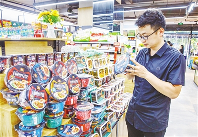 7月26日,市區一家連鎖超市,市民選購我市企業生產的預制菜產品。