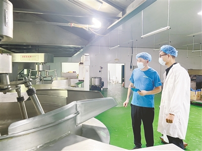 “鍋中正在熬制酸菜魚調味料。我們廠實行訂單式生產模式,主要做火鍋底料、蘸料、傳統醬等。”公司負責人趙鵬程說,“上大學時,我就想在餐飲方面干點事。畢業后,我在成都、重慶等地學習店鋪經營、餐飲銷售、調料制作等。2012年,在親戚和朋友的支持下,我在裴城鎮開了第一家火鍋店。”