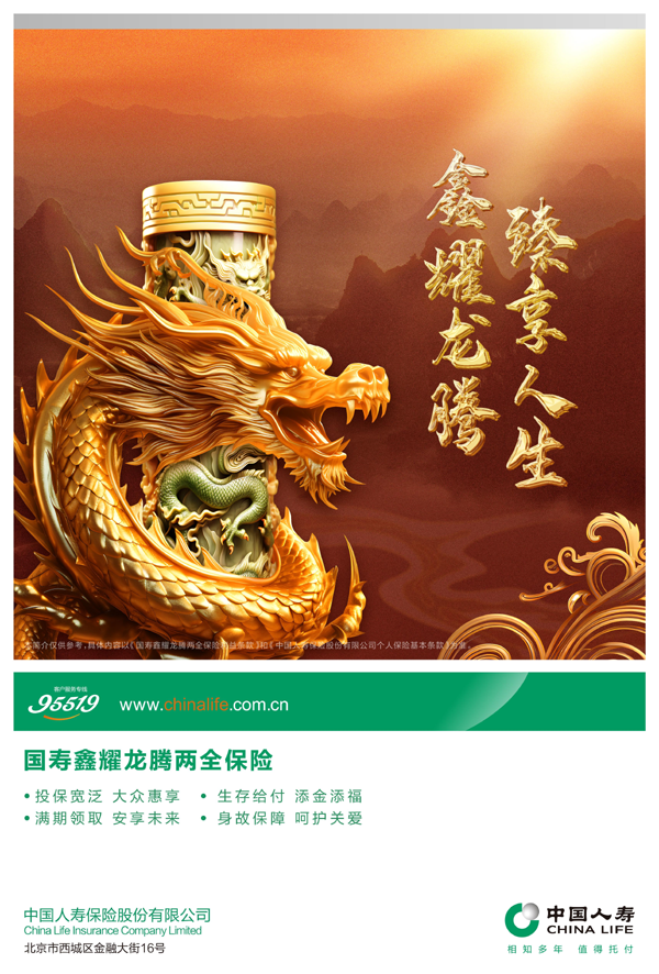 選擇“鑫耀龍騰”,洞見美好明天,護航幸福生活。中國人壽壽險公司始終陪伴在廣大客戶身旁,不忘初心,砥礪前行,傾情守護人民美好生活。未來,中國人壽壽險公司將繼續深耕壽險沃土,為廣大保險消費者提供更加簡捷、品質、溫暖的保險保障服務,切實提升人民群眾的獲得感、幸福感和安全感。