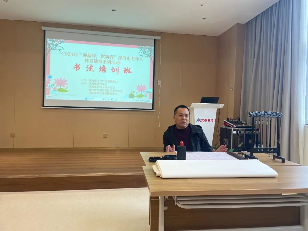 2月18日上午,由漯河市文化廣電和旅游局主辦,漯河市體育中心、漯河市老年人體育協會、漯河市幸福家園社區老年大學、召陵區綜合養老服務中心承辦的2024年“迎新年 賀新春”漯河市老年人體育健身系列活動 —書法培訓課如期開講。