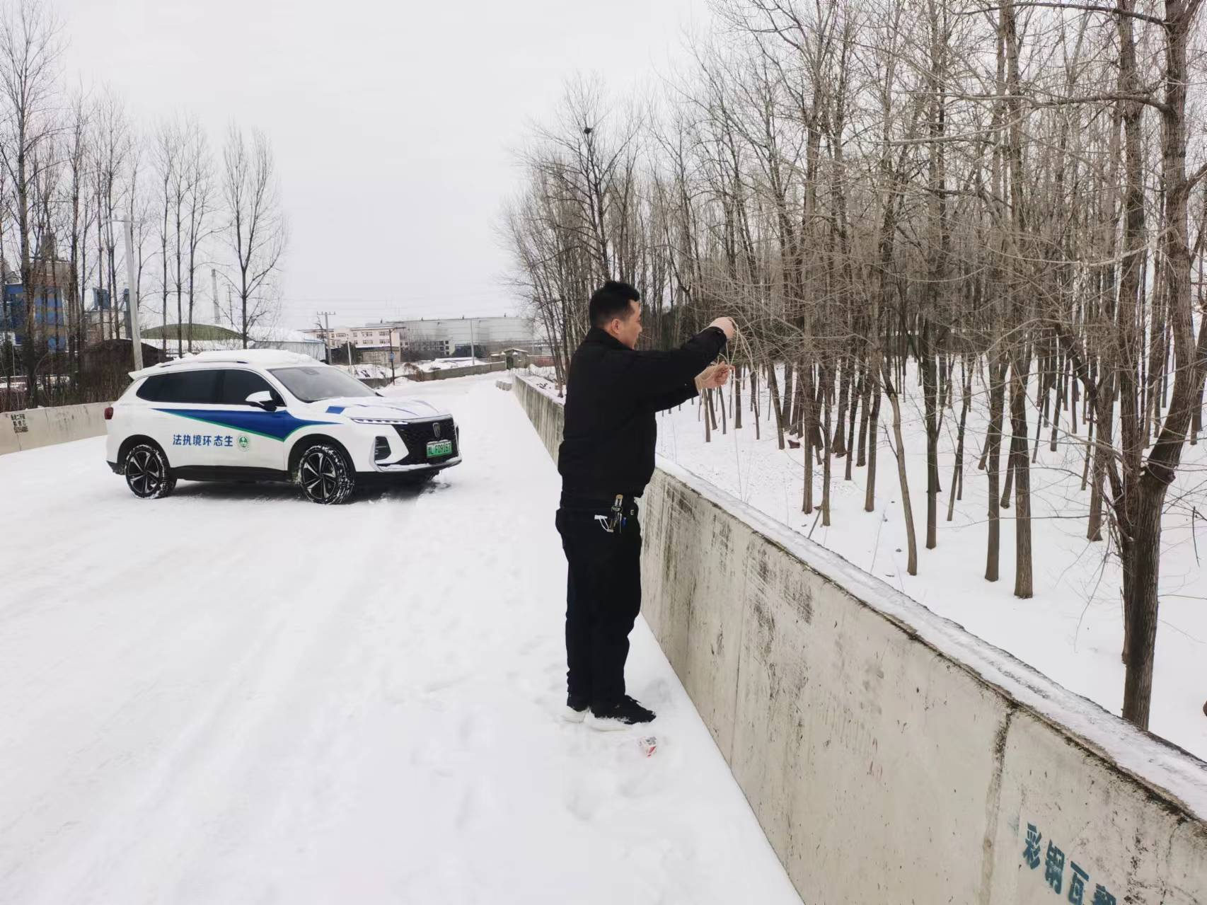 2月23日上午9:30分,舞陽城區外道路上雪深路滑、人車難行,漯河市生態環境局舞陽分局環境監測站的3位同志已經趕到了距城區10余公里以外的西平縣洪村鋪斷面提取水樣,取完水樣,他們又立即趕到舞陽三里河—栗園橋斷面提取水樣,并帶回化驗室進行化驗,以掌握異常天氣情況下水環境質量情況。