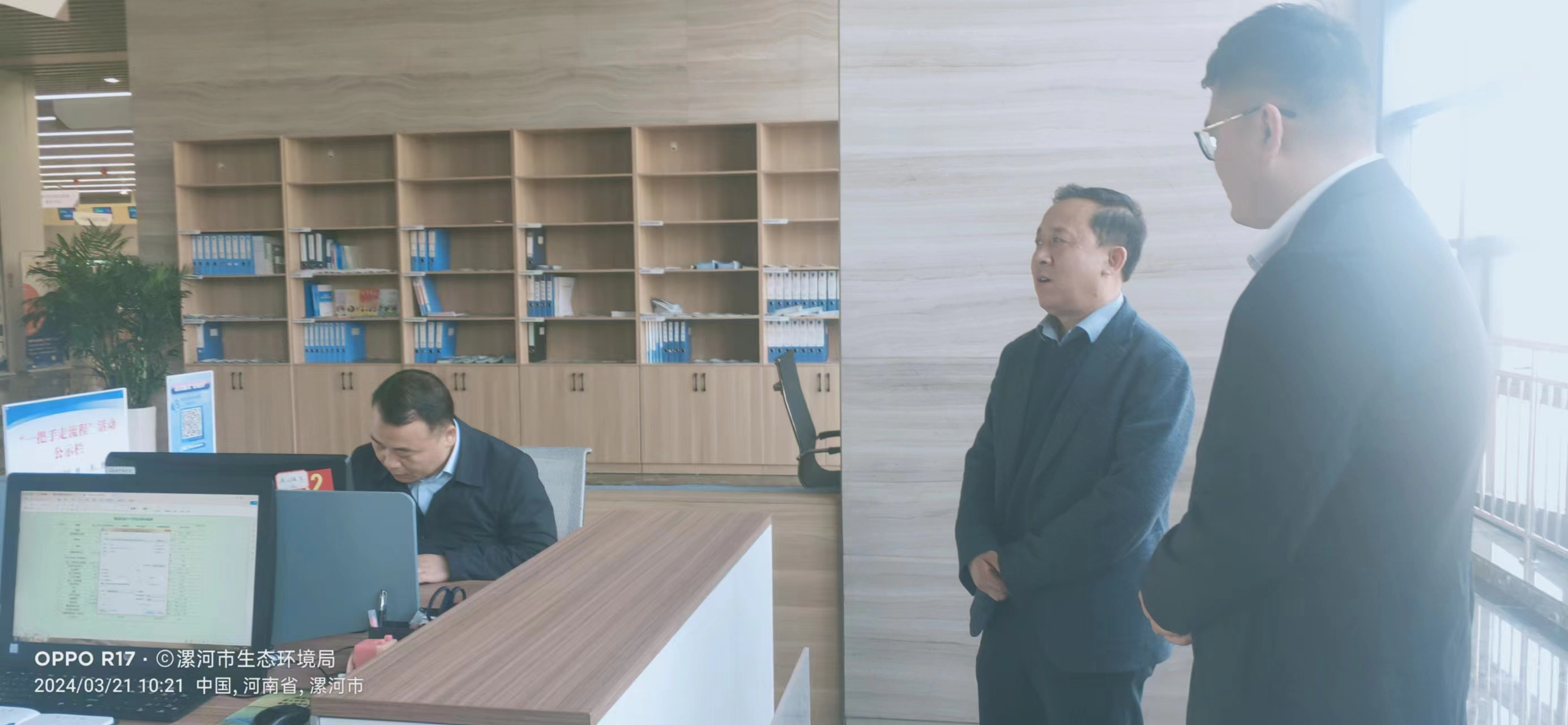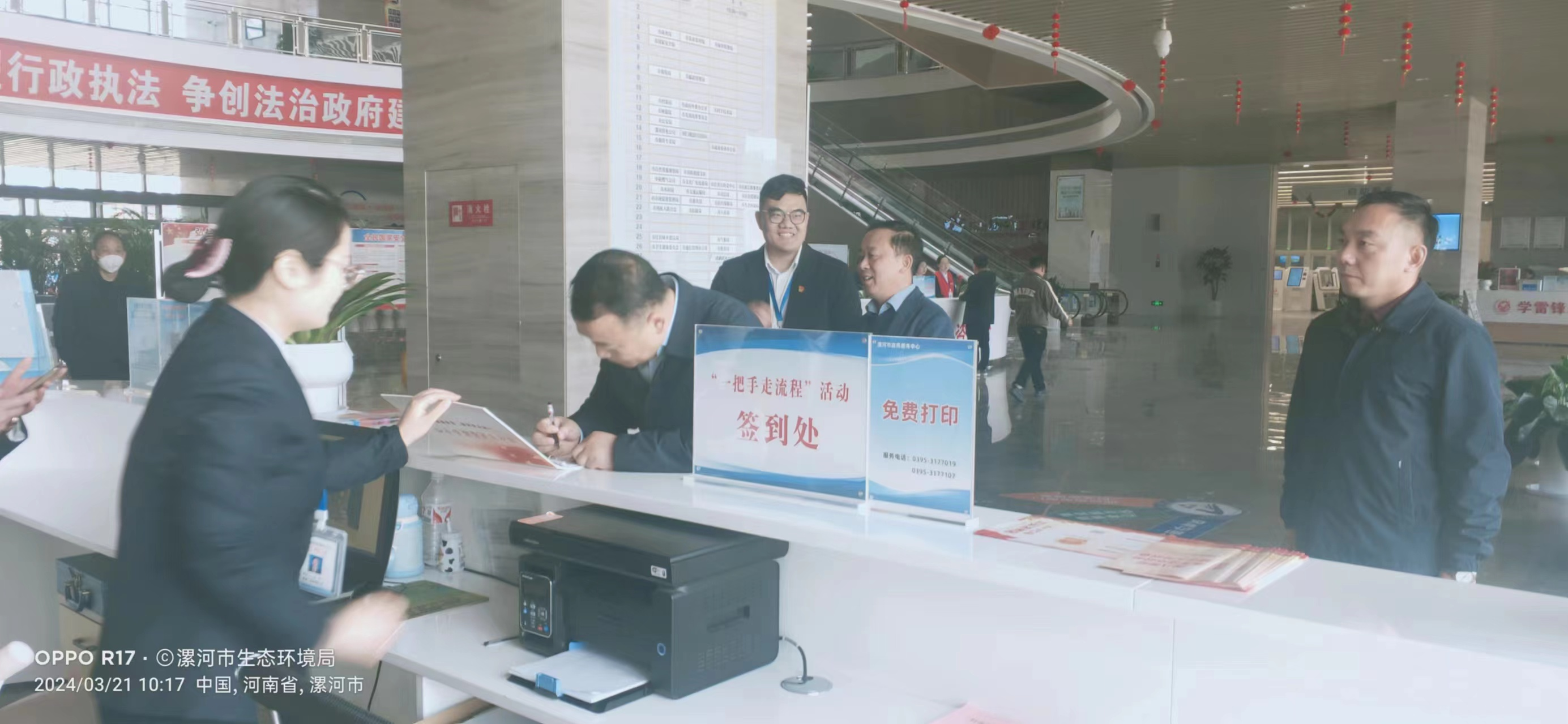 3月21日上午,漯河市生態環境局黨組書記、局長、市環評服務專班組長曹家旋到市民之家體驗政務服務“一把手走流程”活動。