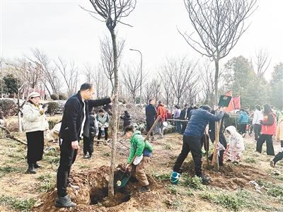 3月9日,市城市管理局園林綠化養護中心組織開展義務植樹活動。 見習記者 李慧瑩 攝