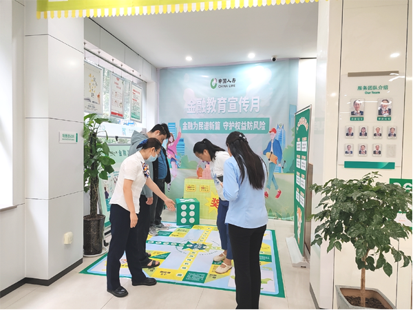 中國人壽壽險(xiǎn)漯河分公司黃河路營業(yè)廳內(nèi)設(shè)置了全國統(tǒng)一的“金融知識(shí)便利店”,分為活動(dòng)主海報(bào)、禮品區(qū)、金融機(jī)場互動(dòng)版塊、“八大權(quán)益”連連看互動(dòng)板塊,將金融知識(shí)融入妙趣橫生的互動(dòng)游戲之中。金融機(jī)場飛行棋游戲互動(dòng)版塊分為保險(xiǎn)專機(jī)、反詐專機(jī)、反洗錢專機(jī)、反非專機(jī),客戶朋友們輪流擲骰子前進(jìn)或后退,根據(jù)點(diǎn)數(shù)對應(yīng)位置進(jìn)行做俯臥撐、背古詩、蹲起、模仿動(dòng)物叫的游戲和學(xué)習(xí)金融保險(xiǎn)知識(shí)等。“八大權(quán)益”連連看活動(dòng)讓客戶朋友們?nèi)娴亓私庀M(fèi)者八大權(quán)益等知識(shí),大家在歡聲笑語中輕松掌握金融防騙、反洗錢、防范非法集資、金融保險(xiǎn)知識(shí)等。公司對參與互動(dòng)游戲的客戶朋友們送上了中國人壽專屬的小禮品,讓客戶在參與中收獲知識(shí)與喜悅。同時(shí),寓教于樂的游戲項(xiàng)目有效提升了金融知識(shí)普及的覆蓋面與接受度,彰顯了中國人壽服務(wù)社會(huì)的責(zé)任擔(dān)當(dāng)。
