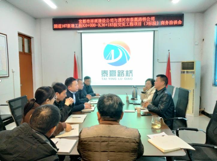 2024年12月5日,漯河市公路事業發展中心直屬企業泰贏路橋工程有限公司與湖北省宜都市祥順建設工程有限公司主要負責人一行進行商務洽談,旨在響應市長黃鈁專題調研全市公路事業發展情況時強調“要堅持市場化導向,鼓勵支持該中心直屬各企業“走出去”開拓市場,靠大聯強,開展戰略合作”的相關要求,尋求合作契機。