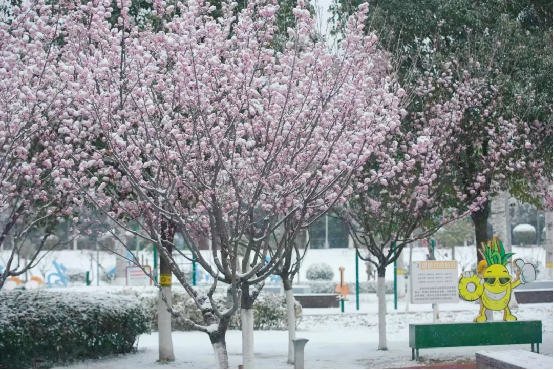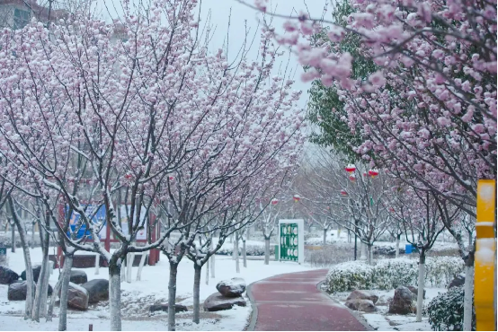 紅道蜿蜒櫻園里,雪映繁花待春綺。宋陟睿 攝(李鑫燕 宋陟睿)