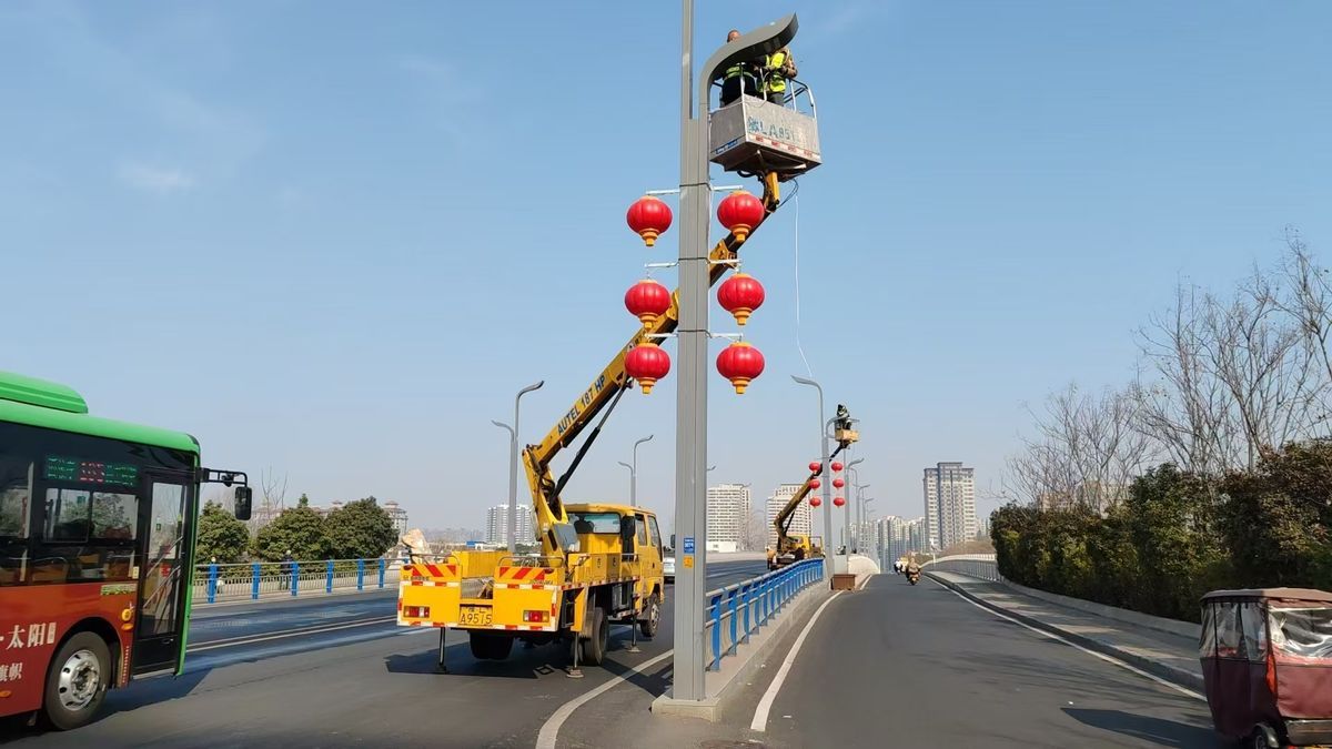 迎春燈飾安裝依托行道樹、路燈桿,以傳統(tǒng)紅燈籠為主,滿天星、藤球燈、星星燈等造型燈交叉懸掛點(diǎn)綴裝飾,光源以紅色、橙色、黃色暖色系為主,打造出溫馨祥和、紅紅火火的新年味兒。為早日完成安裝工作,該中心組織近百名人員,多班組同時(shí)在各燈飾安裝點(diǎn)位施工作業(yè),不分白天黑夜,加班加點(diǎn),緊鑼密鼓地高效推進(jìn)。