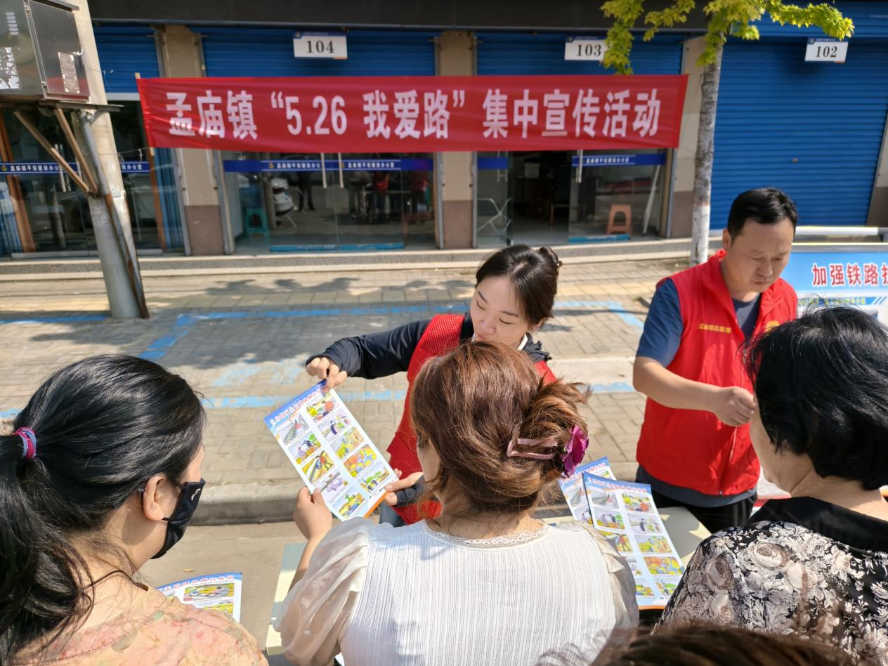 為進一步加強鐵路安全管理,保障鐵路運行安全和暢通,提升人民群眾愛路護路及鐵路安全意識。5 月 26 日,孟廟鎮開展 “5·26 我愛路”主題宣傳教育活動。
