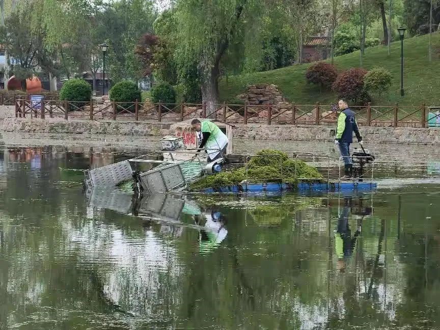 科學管養:為荷花生長鋪就溫床。目前,人民公園荷塘里,千瓣蓮、黃千層、仙女散花等多個品種靜待萌發。為守護這份美麗,園林養護人員從初春便開啟"定制化"呵護。每年3月,在荷葉未萌發前,養護人員運用機械船已開始定期清理水草,配合自主研發的輕便型打撈工具,既能精準清除水下纏繞的雜草,又不傷及荷花根系,為新荷萌發預留充足空間。