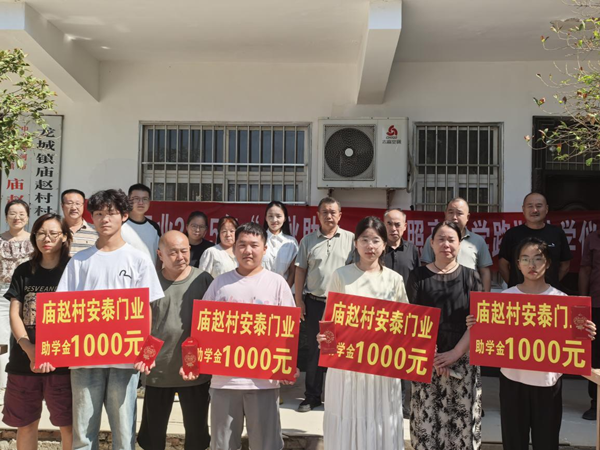 2025年8月22日上午,龍城鎮(zhèn)廟趙村洋溢著溫暖與希望的氛圍,愛心企業(yè)安泰門業(yè)2025年“金秋助學(xué)·愛心照亮求學(xué)路”助學(xué)儀式在這里隆重舉行,為村內(nèi)4名即將踏入大學(xué)校門的優(yōu)秀學(xué)子送去每人1000元助學(xué)金,以實際行動履行企業(yè)社會責(zé)任,鼓勵村里的優(yōu)秀學(xué)子努力奮進,幫助他們更好地開啟大學(xué)生活。
