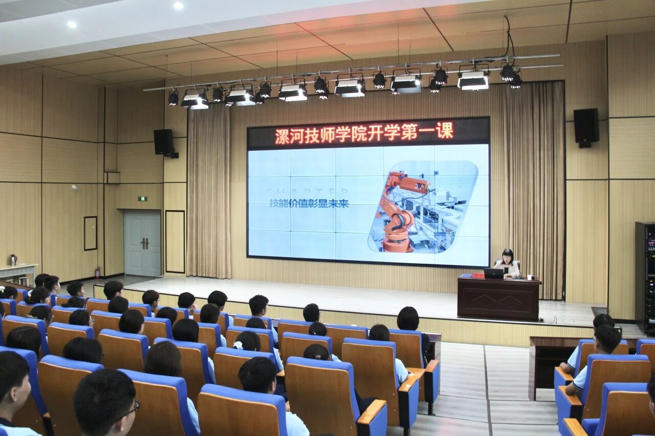 9月9日,漯河技師學(xué)院院長馮凱在潤德樓308報(bào)告廳以《技能照亮前程,勞模工匠領(lǐng)航》為題,為2025秋季新生講授“開學(xué)第一課”,以有高度、有深度、有情懷、有溫度的思想政治理論課形式,點(diǎn)燃漯技學(xué)子逐夢技能的報(bào)國熱情?;顒佑蓪W(xué)院黨委副書記范偉鋒主持。