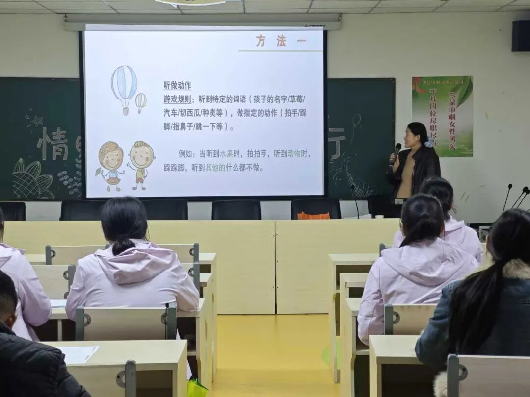 培訓伊始,楊玉婷老師首先通俗講解:“注意力是孩子集中感官與心思做事的能力,對院內孩子而言,更是建立信任、融入集體的關鍵。”她指出,兒童注意力不專注的常見表現包括:聽指令 “左耳進右耳出”、桌面活動 5 分鐘難堅持、眼神游離不愿參與集體,且易因分心出現 “學不會、聽不懂” 問題,強調 “這并非故意不聽話,而是需要專業引導”。